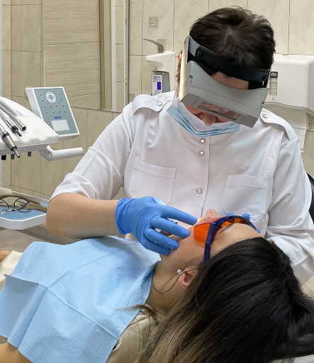 У нас безболезненное лечение зубов: мы используем вначале местную аппликационную анестезию в месте скола иглы, а затем проводим уже основную анестезию